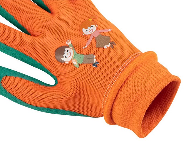 Rękawice robocze dla dzieci, poliester pokryty lateksem (crincle), rozmiar 5, 97-644-5 marki NEO wykonane zostały z poliestru z dodatkowym pokryciem lateksem (crincle), wpływającym na lepszy chwyt oraz zabezpieczającym przed szybkim zużyciem. Rękawice należą do kategorii I. Oddychająca zewnętrzna tkanina wpływa na komfort użytkowania. Rękawice dziecięce zakończone są praktycznym ściągaczem, który zapobiega przedostawaniu się brudu do środka. Kolorowy nadruk z podskakującymi z radości dziećmi z pewnością przypadnie do gustu małym miłośnikom ogrodnictwa oraz majsterkowania. Rękawice robocze marki NEO posiadają zgodność z certyfikatem CE.